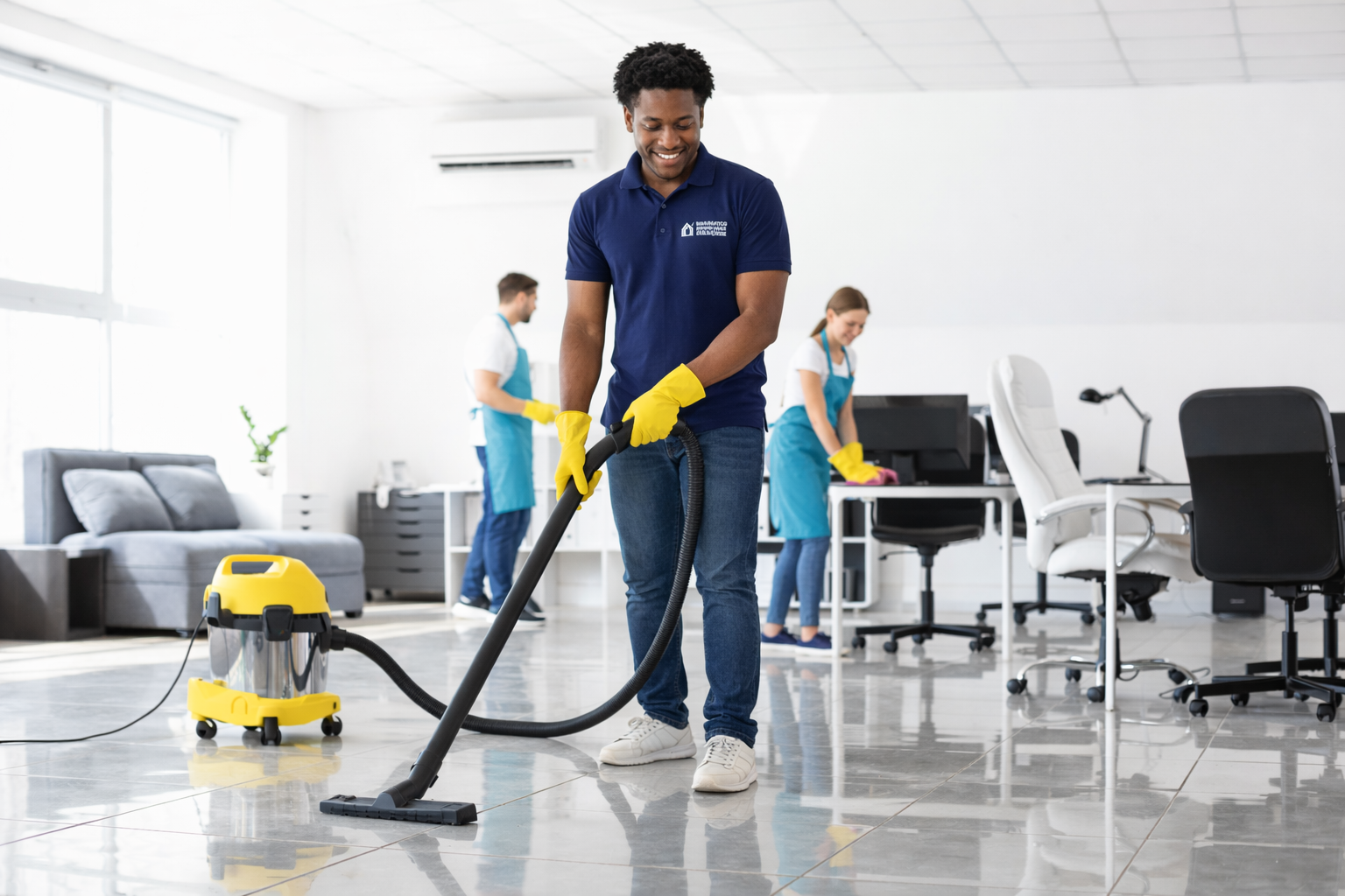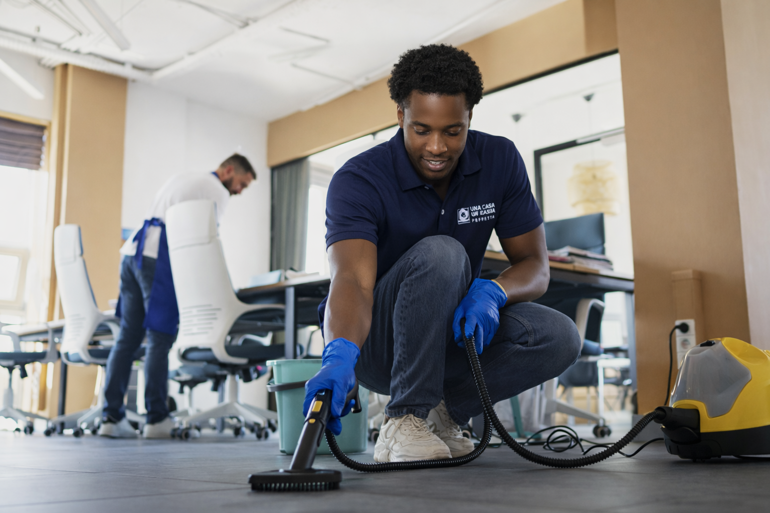 Pulizia quotidiana o periodica di ambienti di lavoro.